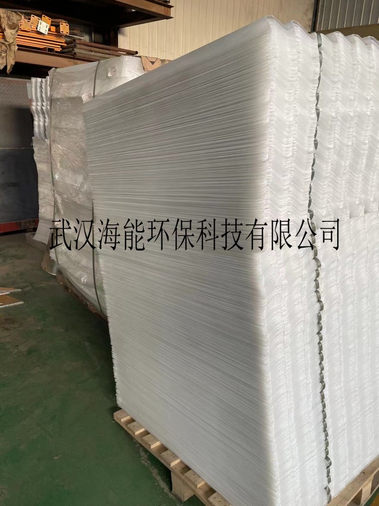 斜板填料,強(qiáng)度高,耐腐蝕,相對(duì)于六角蜂窩斜管填料,使用周期更長(zhǎng),維護(hù)方便